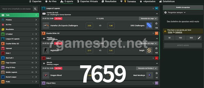 A aposta 7659 oferece aos jogadores a experiência mais conveniente de apostas em eSports!